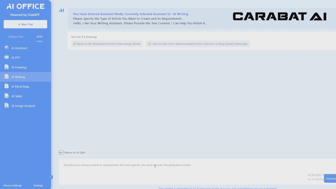 Click the AI Writing button in the AI interface, enter the description of the article you need to generate at the bottom of the interface, click Send, and the system will generate the outline of the article you need in a few seconds. Click Main Text, and the system will automatically generate the whole article.