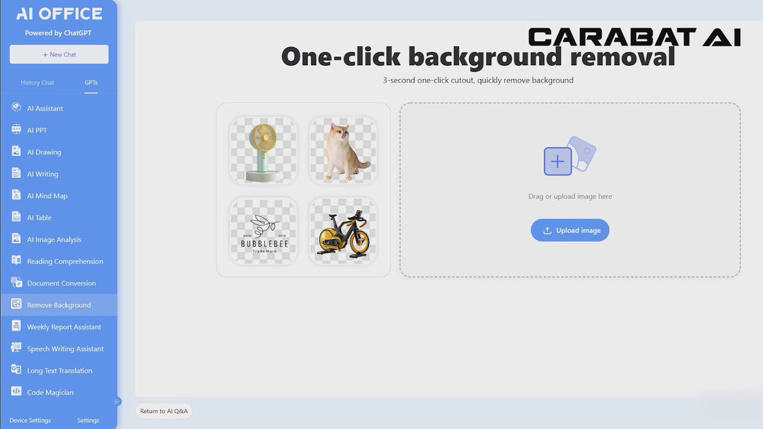 Upload an image and click on 'Background removed'.