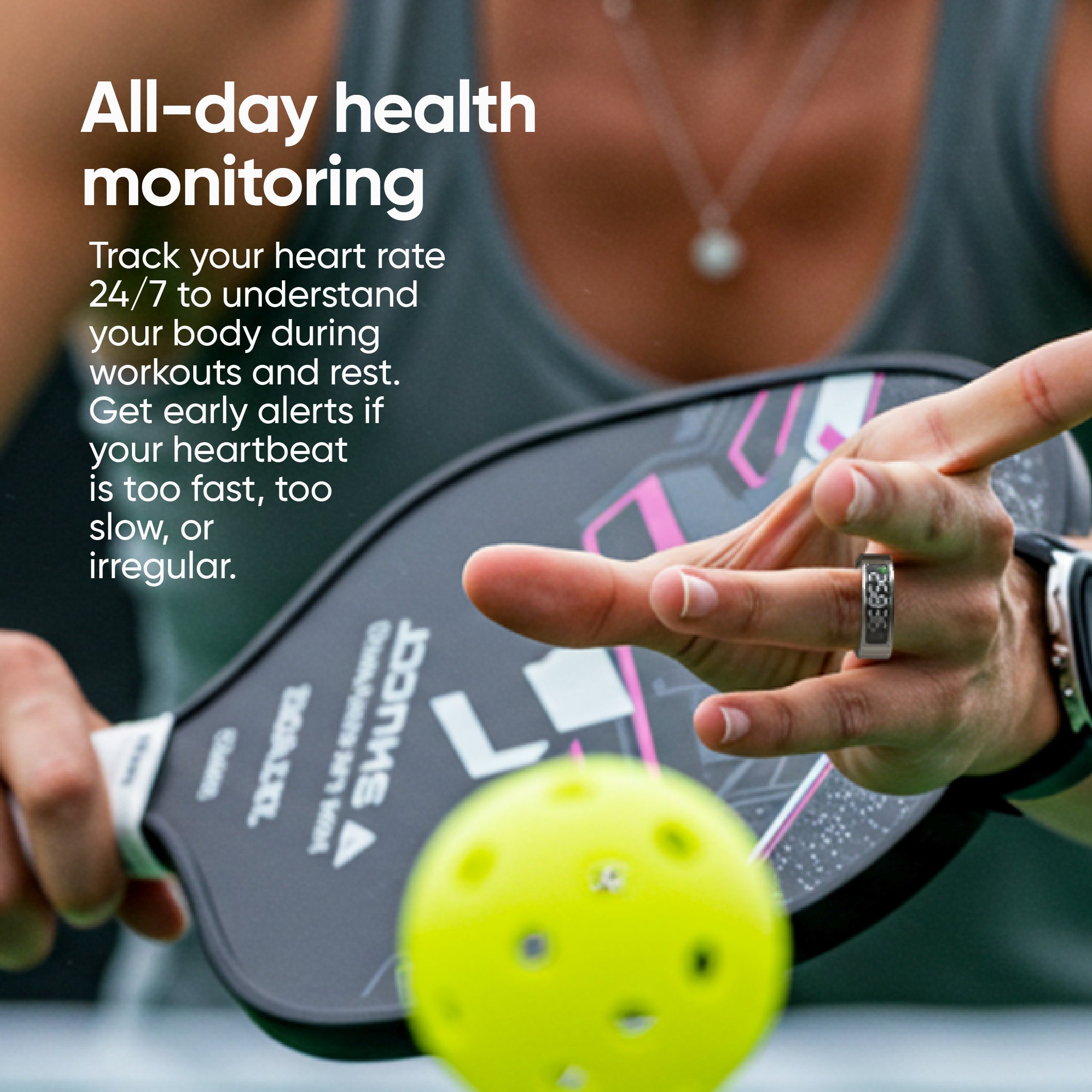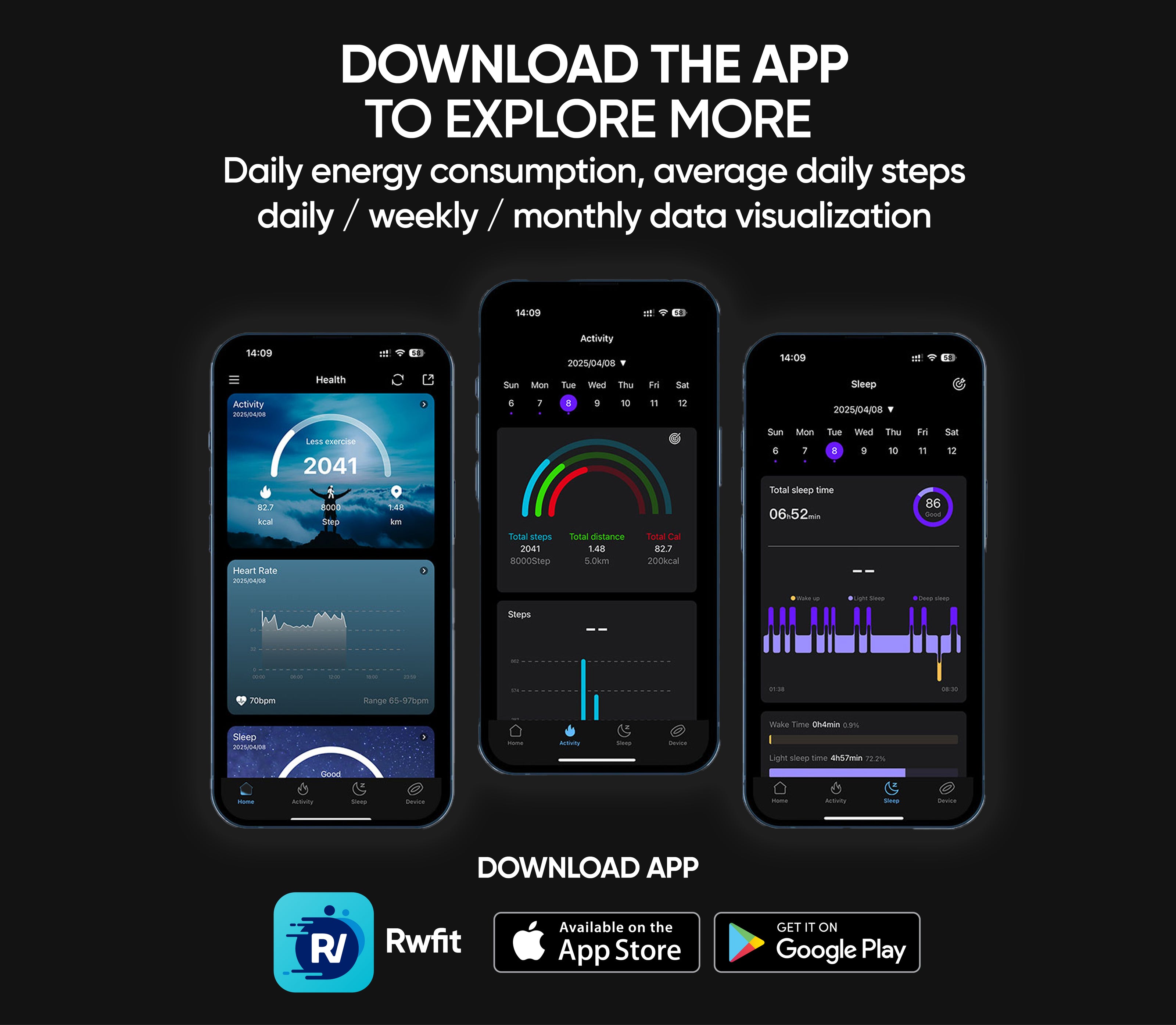 Experience the future of wearable wellness with the Carabat Ring. Designed to fit comfortably on your finger, this sleek smart ring features a real-time display to track your steps, heart rate, sleep, sugar levels, and more. Paired with the RWFit app, you’ll gain full control over your health insights—and even your phone. The included premium magnetic charging box keeps your ring protected and powered with style. It's your perfect balance of fashion, function, and convenience.